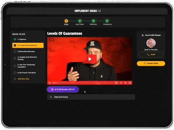 Never implement alone again. Ai Profit Buddy (trained on over 150 hours of FRAP content) analyzes your business, answers your questions in real-time, and guides you step-by-step through every profit strategy. It even writes your emails, scripts, and campaigns for you. Just plug in your business info and let Ai do the heavy lifting for you. No guesswork.