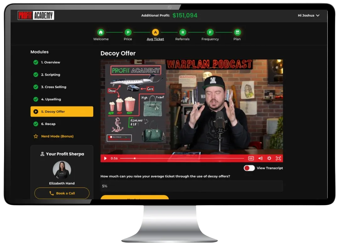 Bring your specific questions about your Profit Plan, packages, copy, or implementation challenges and Josh will roll up his sleeves to help you fix it right there on the spot.